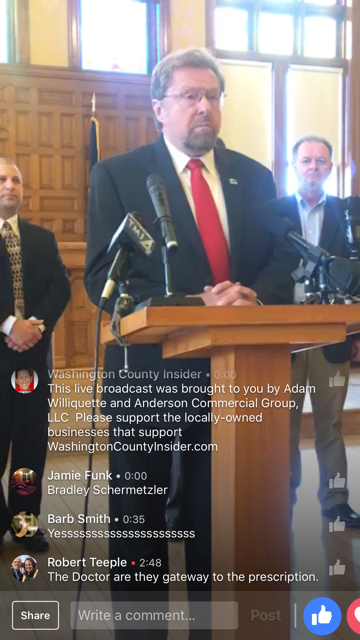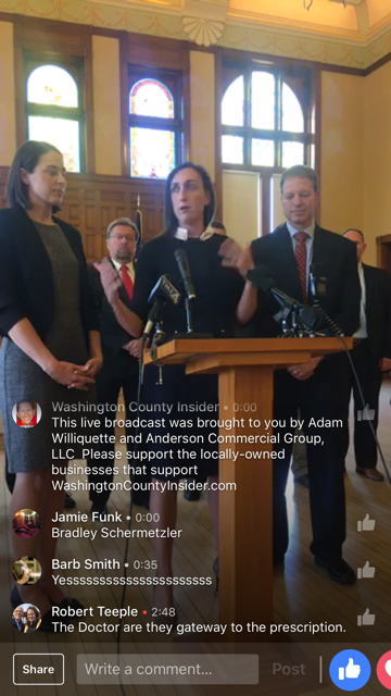 Nov. 7, 2017 – Washington Co., WI – The old Washington County Courthouse took center stage Tuesday as attorneys from the law firm of Crueger Dickinson were joined by officials from Washington County and representatives from 28 other counties in Wisconsin to announce a lawsuit against five pharmaceutical companies for their role in the current opioid epidemic.