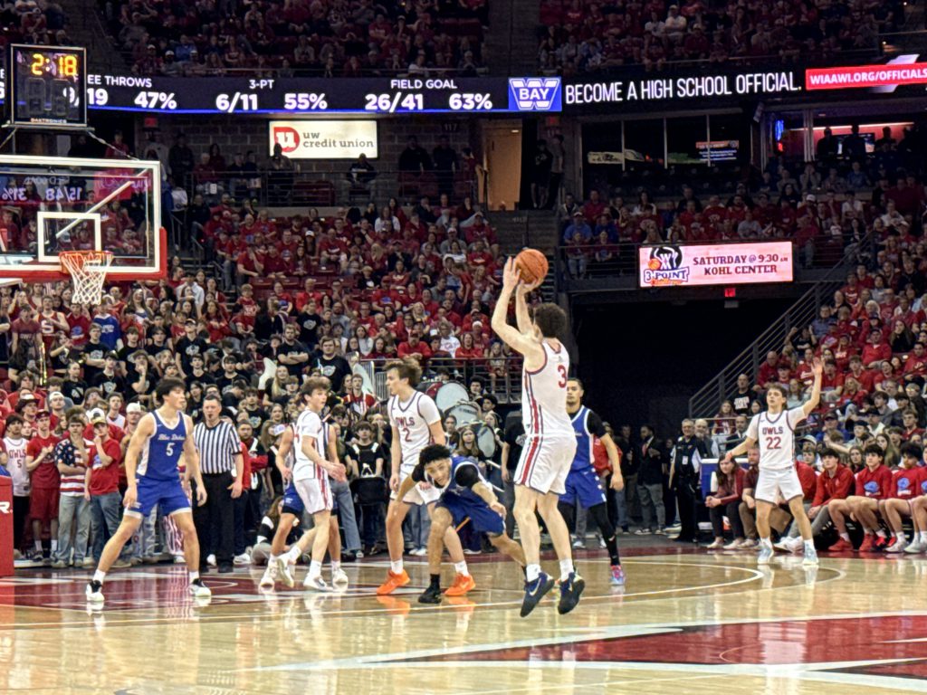 The Owls ran into a relentless Whitefish Bay squad Saturday night in the WIAA Division 2 state championship, falling 77–46 in a game that tilted early and never quite leveled out.