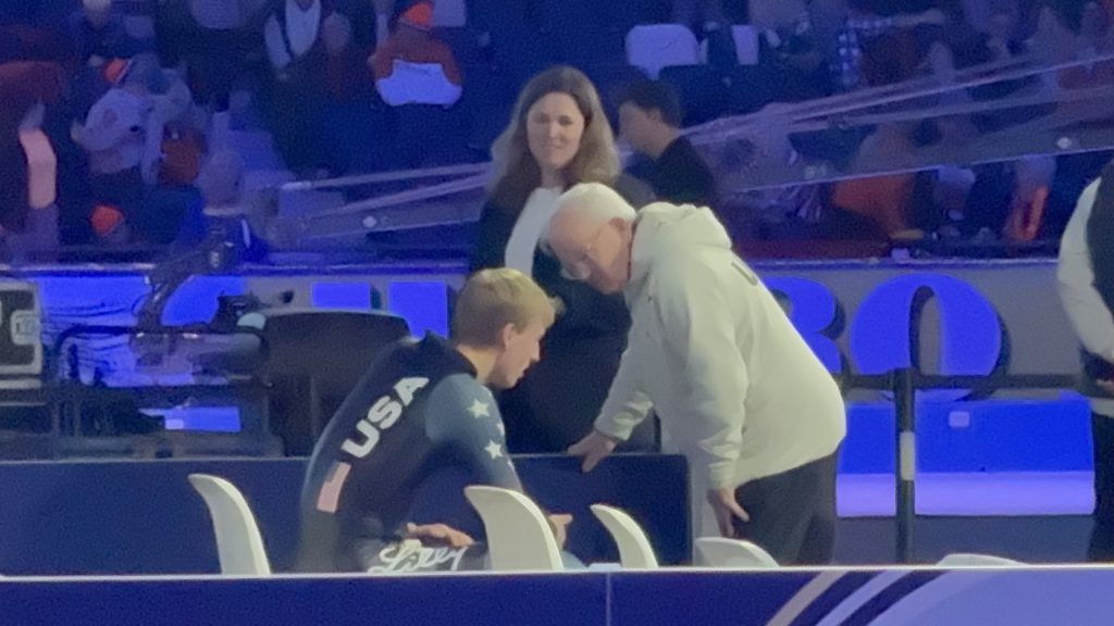 March 8, 2026 – Heerenveen, NL – It all came down to the last race at the World Allrounds and the pressure was on Jordan Stolz as a 10,000-meter competition was looming.