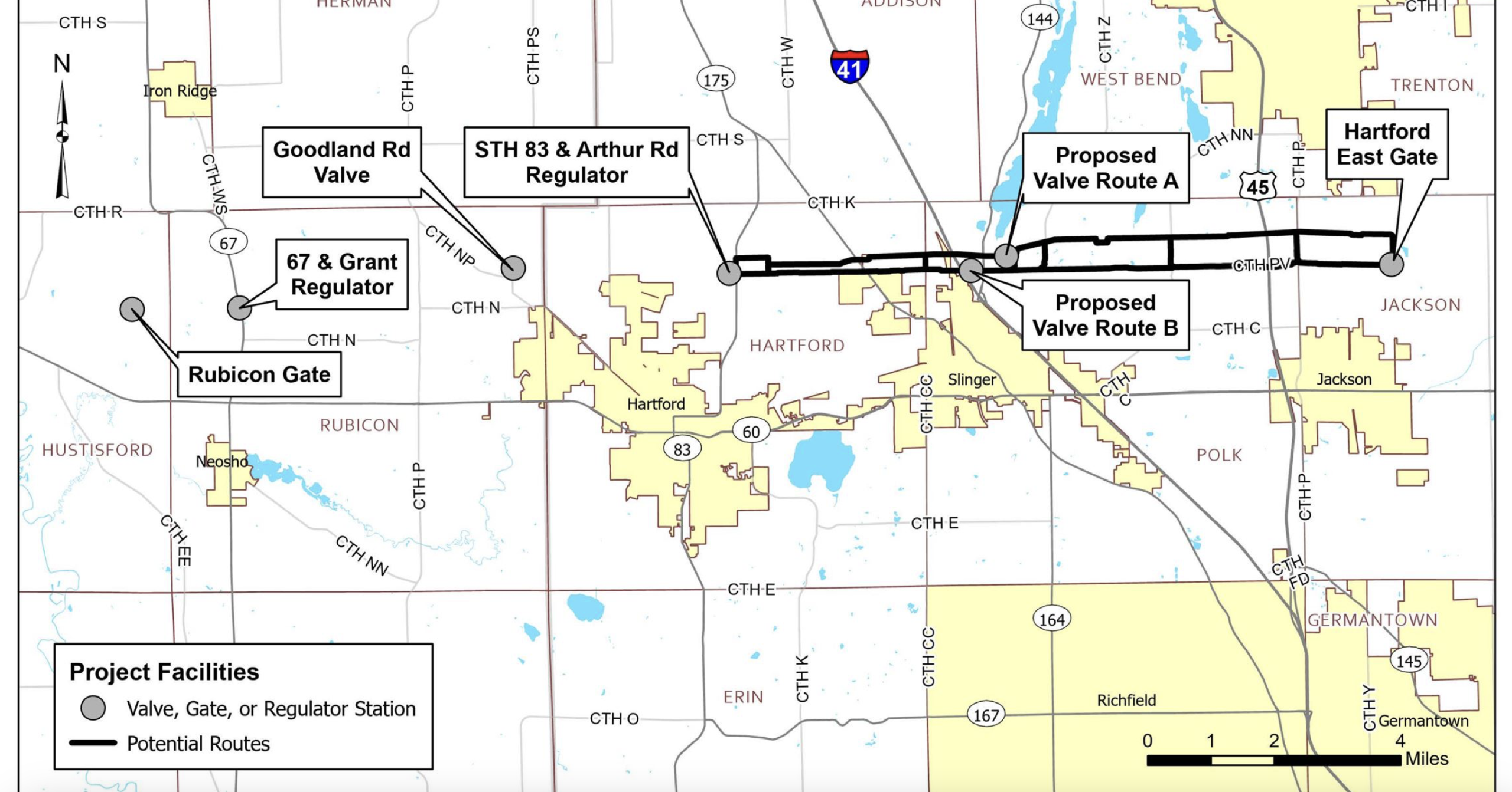 August 9, 2025 – Washington Co., Wi – Wisconsin Gas LLC is looking at developing a new 12-mile natural gas transmission pipeline dubbed the “Hartford Jackson Interconnect Project.” Neighbors have been notified about the proposed pipeline in the Towns of Hartford, Polk, Jackson, Rubicon, Hustisford, and the Village of Slinger, in Washington and Dodge Counties, Wisconsin. Two primary routes are on the table with price tags between $40.6 million and $42 million. Are you affected?