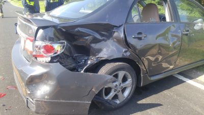 Two passengers in the car were transported to a local hospital and the motorcyclist was treated and released.