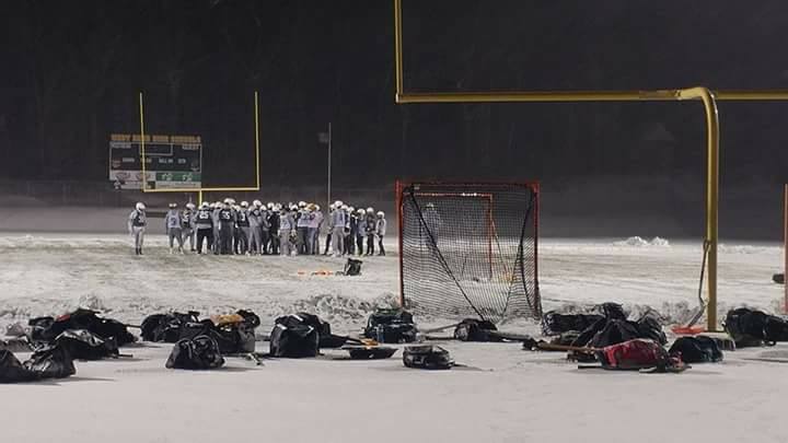 March 9, 2018 – West Bend, WI – West Bend Rush High School lacrosse team kicked off practice this week in the snow. A dedicated bunch!