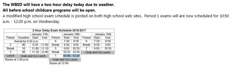 West Bend Schools on 2-hour delay – Click HERE to see modified H.S. exam schedule
